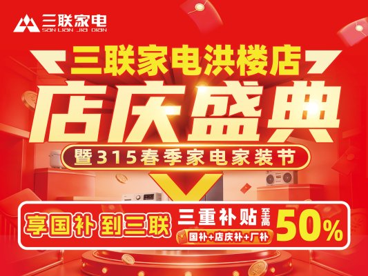 三联家电洪楼店将于3月7日至3月15日隆重举办店庆盛典,为广大消费者带来一场诚意十足、优惠空前的家电购物盛宴。