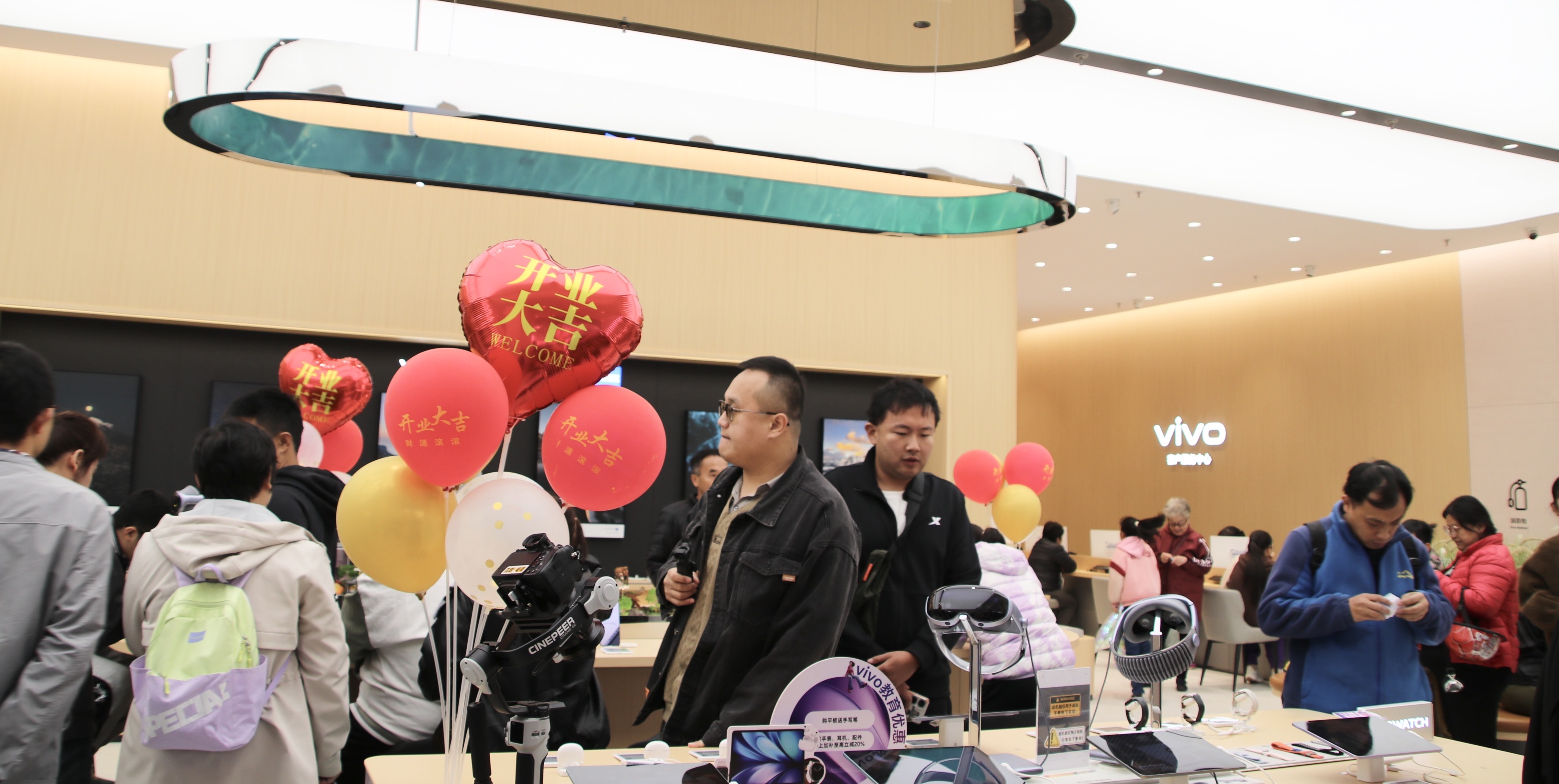 据介绍,作为vivo山东首家销服一体旗舰影像馆,该馆不仅是vivo品牌在济南的全新战略布局,更是融合“人文影像”与高端服务的城市新地标,集产品展示、AI影像体验、互动创作、售后服务于一体。开业当天,现场设置了MR等最新AI影像技术体验区,吸引众多消费者驻足体验。