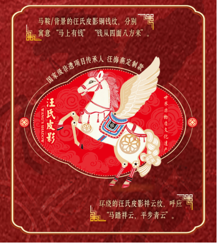 此次大窑联名汪氏皮影推出马年限定非遗罐,罐身设计以马年生肖为核心,汲取皮影的艺术精髓——流畅的雕刻线条、鲜明的色彩对比、传神的动态造型,让一匹昂扬威武、寓意吉祥的马形象跃然罐上。设计细节处处承载匠心:马鞍饰以铜钱纹,寓意“马上发财”;四周背景融入同款纹样,寄托“财从四面八方来”的美好期许;飘逸的鬃毛以皮影拉丝纹呈现,马尾则点缀“汪氏皮影”特色中国结,整体姿态灵动昂扬;关节处饰以八瓣梅纹,象征灵活进取,寓意财源滚滚不息;画面中两根皮影操纵杆巧妙融入,寓意“握住大窑,所有的美好祝福都尽在掌控之中”。