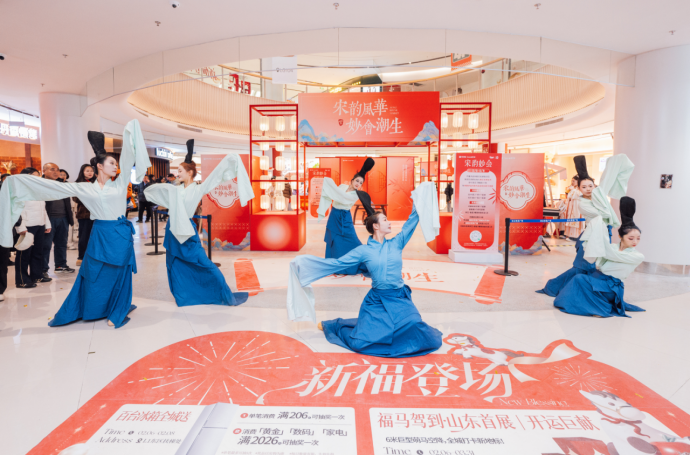 马上有福 全城打卡以「马上有福」山东首展为核心,巨型萌马装置成为打卡焦点。「宋韵妙会」与「新福百戏」 剧场让传统文化焕新体验,「开新音乐节」及独创的“清照电音派对”则用音浪点燃夜晚,外广场的「篝火晚会」与「随机舞蹈」派对更精准触达多元圈层,持续引爆社交热度。