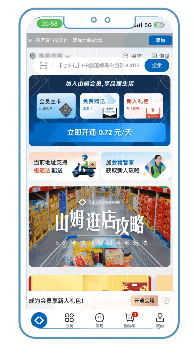 简单几步,扫码加入山姆会员,享新人大礼包