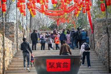 春日融融,正是走出家门、登高望远、亲近自然的好时节。万物复苏、山野焕新,人们在盎然春意中驱散冬日沉闷,尽享生态美景。春风吹拂下,石崮寨景区连翘花竞相绽放,漫山金黄灿烂;桃花、李花次第盛开,粉白相间随风摇曳,山间嫩芽新绿满目生机。空气中弥漫着花草与泥土的清新气息,令人心旷神怡。