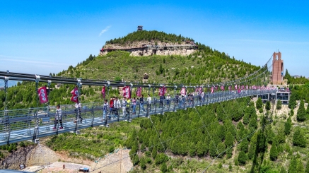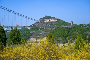 游客沿步道拾级而上,沿途风光如画。惊险刺激的玻璃栈道依山而建,脚下山谷青翠、视野通透;凌空架设的玻璃吊桥横跨山间,行走其上如踏云而行,开阔景致尽收眼底。登临高处远眺,群山连绵、花海层叠,让人心胸舒展、心情愉悦。千年古寨墙、古朴烽火台掩映于繁花绿树间,人文底蕴与春日风光相得益彰,构成独具特色的春日画卷。