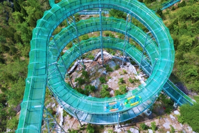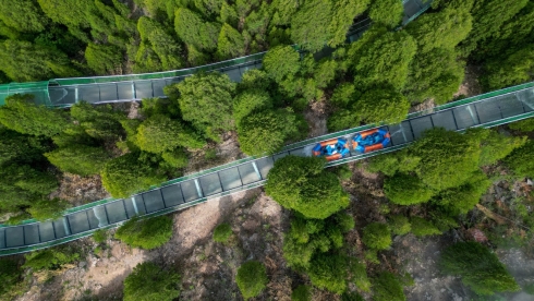 不止漂流,高空网红项目步步有惊喜!悬崖玻璃栈道依山而建,百米落差之下是层峦叠翠的盛景;玻璃吊桥横跨山谷,风过耳畔尽是山野壮阔;玻璃滑道穿梭林间,在风驰电掣间解锁速度与激情。还有龙瀑奇观、喊泉、探险桥等超多项目,让游客在青山绿水间卸下束缚,放肆大笑、尽情畅玩,在自然野趣中找回活力满满的自己。